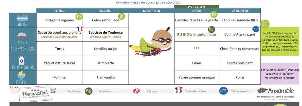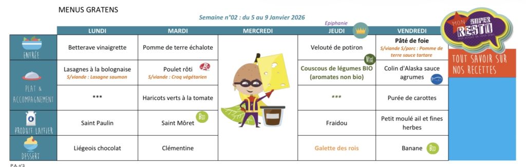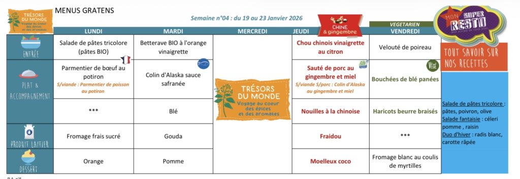 Vous trouverez ici les menus de la restauration scolaire de Gratens.